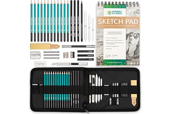 Sketching, Graphite and Charcoal Pencils. Includes 100 Page Drawing Pad, Kneaded Eraser, Blending Stump. Art Kit and Supplies for Kids, Teens and Adults.