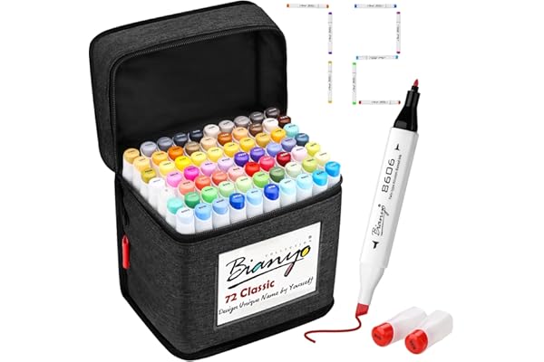 Bianyo Classic Series Alcohol-Based Dual Tip Art Markers (Set of 72, Black Travel Case with a Designable Card)