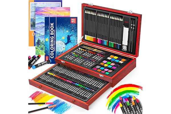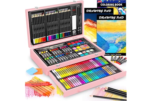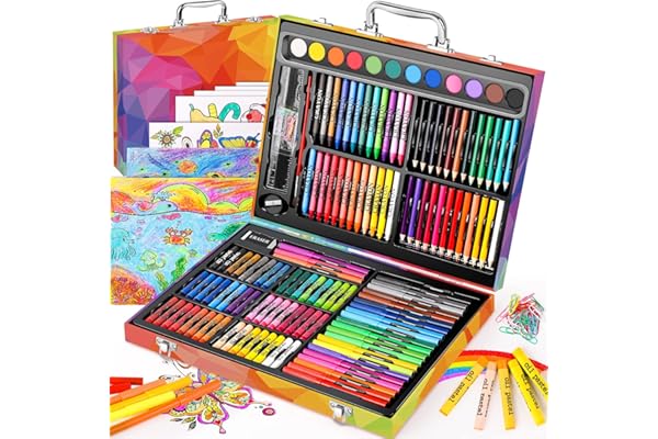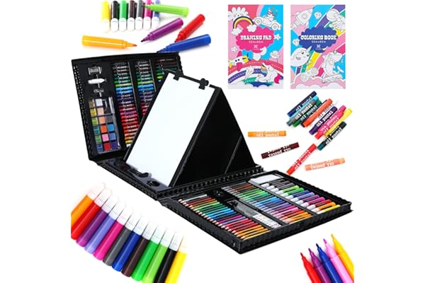183-Pack Drawing Painting Set for Kids Girls Boys Teens, Coloring Art Kit Gift Case: Crayons, Oil Pastels, Watercolors Cake, Colored Pencils Markers, Sketch Paper
