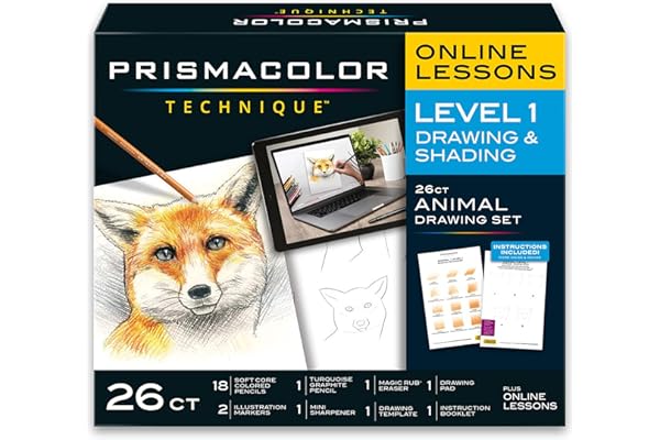 Art Supplies with Digital Art Lessons, Animal Drawings Set, Level 1, How to Draw Animals with Colored Pencils, Graphite Pencils, and More, Fox Drawing Lesson, 26 Count