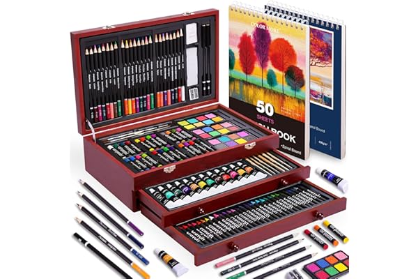 Acrylic Paints,Crayons,Colored Pencils,Paint Set in Wooden Case,Professional Art Kit,Art Supplies for Adults,Teens and Artist,Paint Supplies