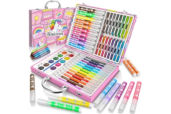 Unicorn Art Set - Painting, Drawing Art Kit with Washable Markers, Double-Tip Pens, Coloring Book, Sketch Pad - Beginners Art Case Gift for Girls (Age 3-12)