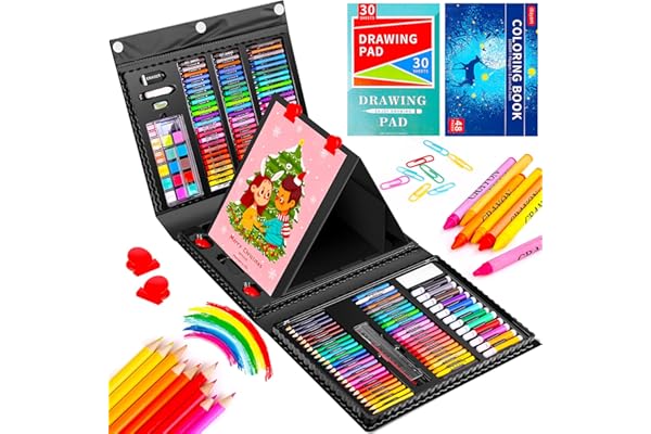 iBayam 222 Pack Drawing Kits Art Supplies for Kids Girls Boys Teens Artist, Beginners Art Set Case with Trifold Easel, Sketch Pad, Coloring Book, Pastels, Crayons, Pencils