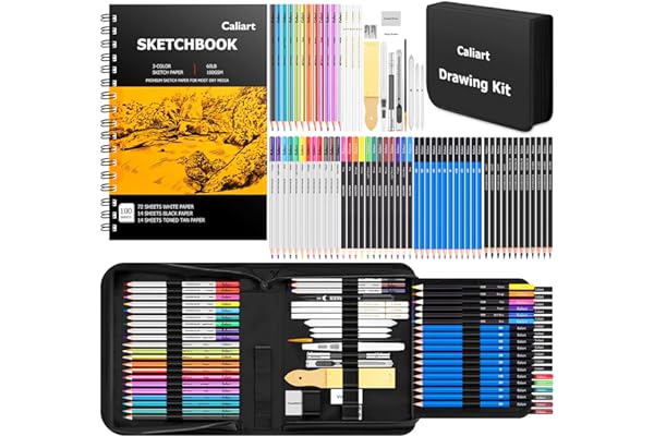 Drawing Supplies, Premium Art Set Sketching Kit with 100 Sheets 3-Color Sketch Book, Graphite, Colored, Charcoal, Watercolor & Metallic Pencils for Artists Adults Teens Beginners