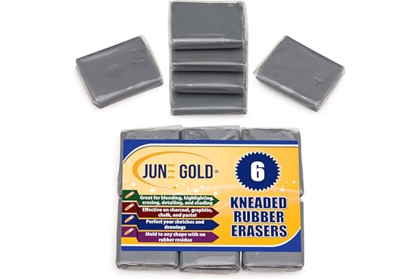 June Gold Kneaded Rubber Erasers, Gray, 6 Pack