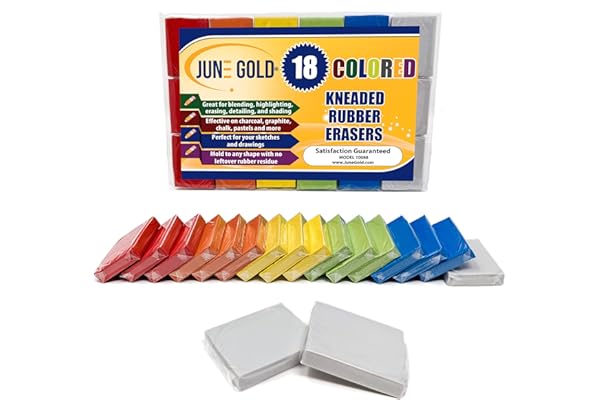June Gold Kneaded Rubber Erasers, Colored, 18 Pack