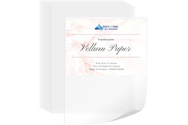 Ray of Ink Translucent Vellum Paper 8.5 x 11 Printable 50 Sheets 93GSM 63LBS Clear Vellum Sheets for Tracing Sketching Painting Invitations Animation