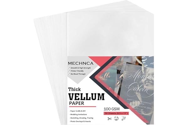 Vellum Paper Translucent Printable 110 Sheets 8.5x11 Inches for Wedding Invitations