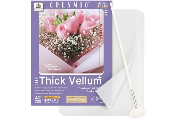 Oplymio 42 Sheets 167GSM Printable Tracing Vellum Paper for Invitations, Envelopes, Heat Embossing, Belly Bands(8.5 x 11 Inches)