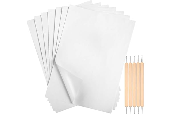 Outus White Carbon Transfer Paper 11.7 x 8.3 Inch Tracing Paper Carbon Graphite Copy Paper with Embossing Stylus Tracing Stylus Dotting Tools for Cloth Fabric Paper Wood (105 Pieces)