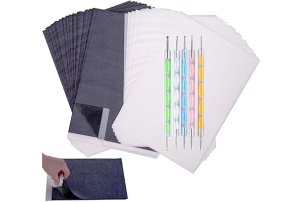 50 Sheets Carbon Paper White Graphite Paper Transfer Tracing Paper and 5 Pieces Ball Embossing Styluses for Wood