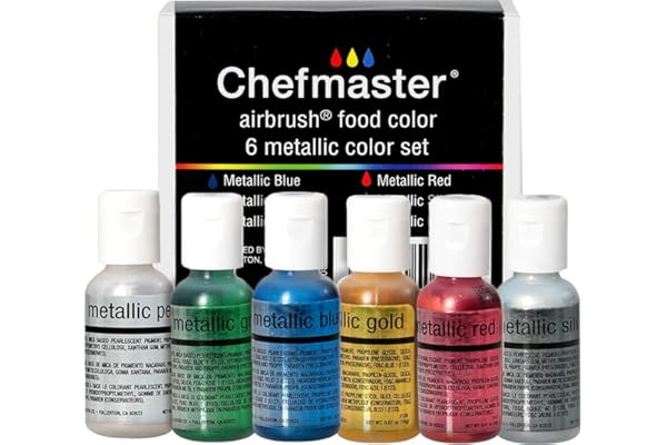 Metallic Airbrush Kit - Airbrush Food Coloring - 6 Pack - Vibrant and Fade-Resistant Sheen - Works With Any Airbrush Tool to Achieve Amazing Effects and Designs - Made in the USA