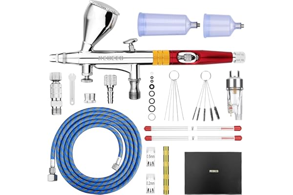 Dual-Action Gravity Feed Air Brush Sets with with Crown Nozzle, 9cc 20cc 40cc Cup,.2, 0.3 & 0.5mm Needles for Makeup Nail Art Shoes Tattoo Cake Toy Model