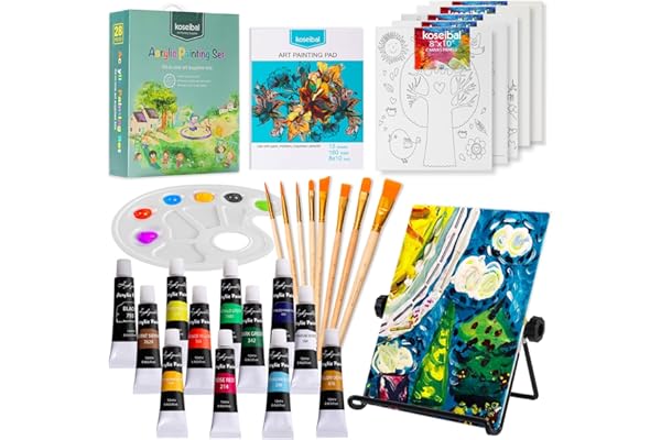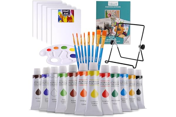 Art Painting Supplies Kit with 12 Paints, 5 Canvas Panels, 8 Brushes, Table Easel, Etc, Premium Paint Set for Students, Artists and Beginner.