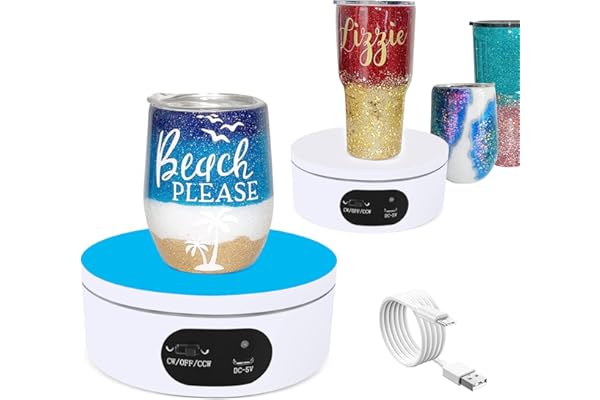 Turner Cup Rotating Display Stand for Epoxy Glitter Tumbler, 360 Degree Automatic Mute Rotating Turntable for Photography Products and Shows