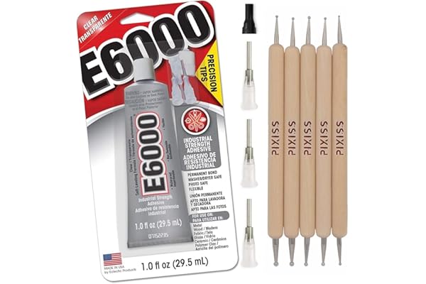 E6000 1-Ounce Tube with Precision Tips Industrial Strength Adhesive for Crafting and Pixiss Wooden Art Dotting Stylus Pens 5 pcs Set