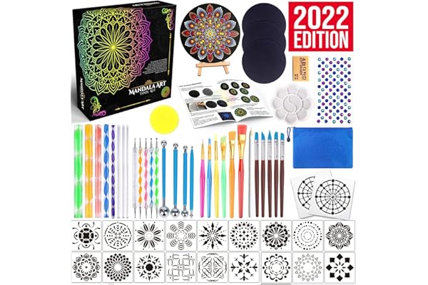 Rock Dot Paint Stencils Tool Set Art Craft Supplies Kits with Tray Brush Zipper Waterproof Bag Pen for Nail Stone Mandala Arts Drawing Home Decor Activity