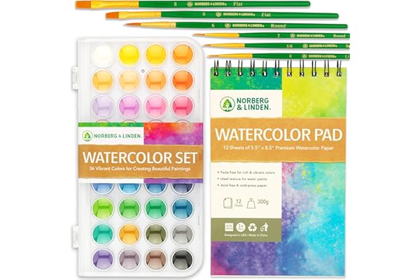 36 Premium Paints - 12 Page Pad - 6 Brushes - Painting Supplies with Palette, Watercolors, Art Pad Paper and Artist Brushes for
