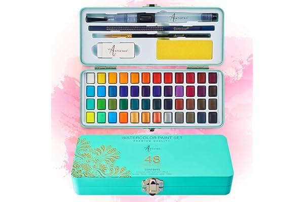 ARTISTRO Watercolor Paint Set, 48 Vivid Colors in Portable Box, Including Metallic and Fluorescent Colors