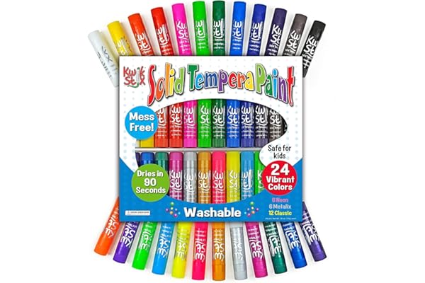 The Pencil Grip Kwik Stix Solid Tempera Paint Pens, Assorted Vibrant Colors, Classic, Metallic & Neon Colors, Super Quick Drying, 24 Count