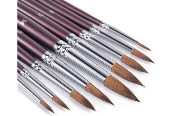 Fuumuui 9pcs Detail to Mop Kolinsky Sable Brushes Round Pointed Professional Watercolor Brushes Perfect for Watercolor Gouache Acrylic Ink Painting