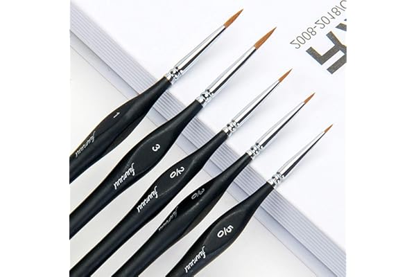 Fuumuui 5pcs Fine Tip Sable Detail Paint Brushes with Ergonomic Triangular Handle Perfect for Watercolor Acrylic Gouache Ink Painting, Models, Warhammer 40k