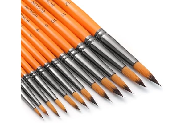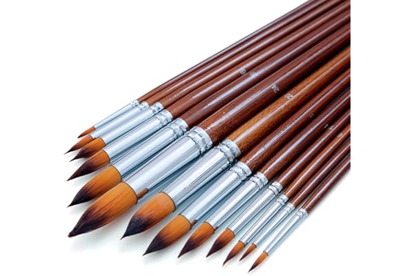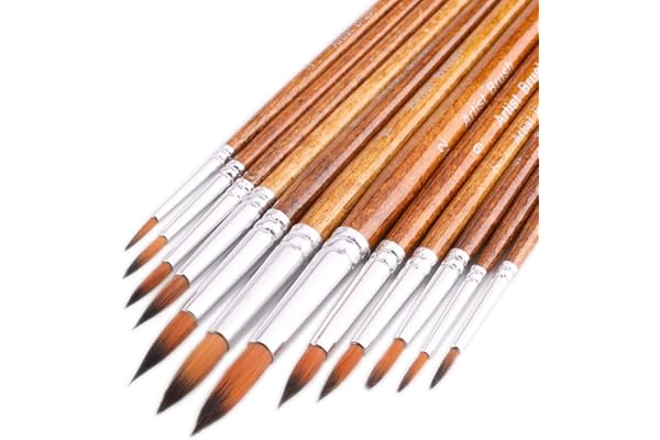 Round Pointed Tip Paint Brushes Set, 12pcs Different Sizes Detail Paint Brush for Watercolor, Acrylics, Ink, Gouache, Oil, Tempera (Brown)