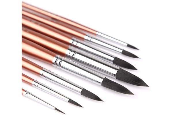 Transon Round Watercolor Detail Paint Brushes Goat Hair 8pcs for Watercolors