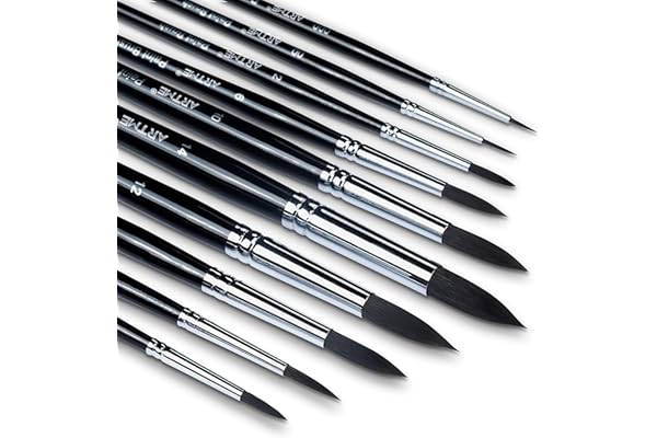 ARTME Watercolor Paintbrush Set - 10 Pcs Round Detail Paint Brushes with Goat Hair