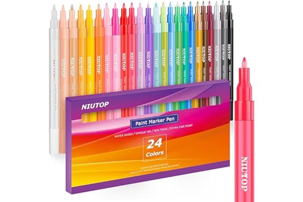 24 Classic Colors Paint Markers for Stone, Rock, Craft DIY, Wood Slices, Ceramic, Halloween Pumpkin Decorating Kit, Art Craft Painting Supplies, Extra Fine Tip