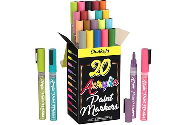 20 Acrylic Paint Markers for Canvas, Rocks, Ceramic, Glass, Fabric, Porcelain