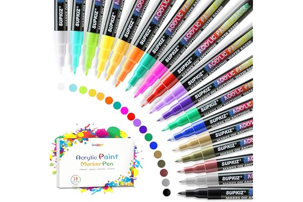 Acrylic Paint Pens Paint Markers Set of 18: Fine Point Paint Pens for Rock Painting Glass Wood Ceramic Fabric Metal Canvas Easter Eggs Pumpkin Kit