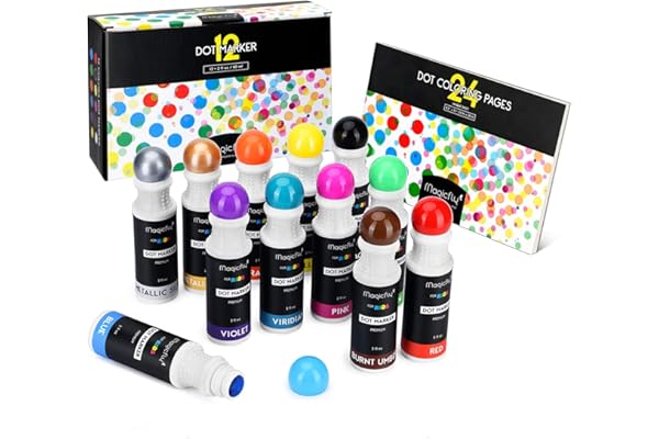 Magicfly 12 Colors Bingo Daubers with Free Dot Coloring Book, Non-Toxic Water-Based Dab Markers, Dauber Markers
