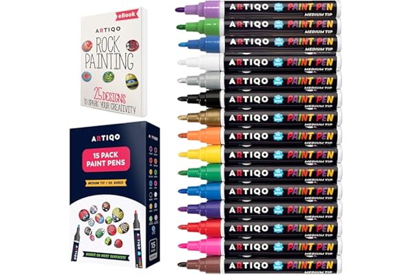 Wood, Glass, Metal and Ceramic Works on almost all surfaces set of 15 Vibrant Medium tip Oil Paint Marker Pens, Quick Dry, Water Resistant