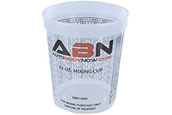 ABN Clear Plastic Mixing Cup 12-Pack 32oz Ounce / 946mL Milliliter Container for Paint