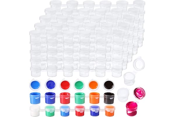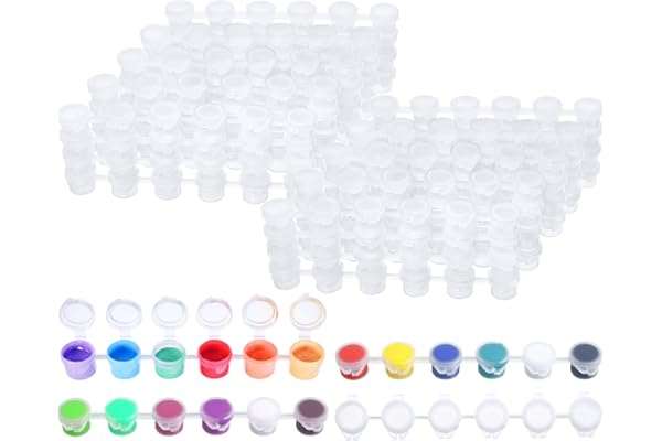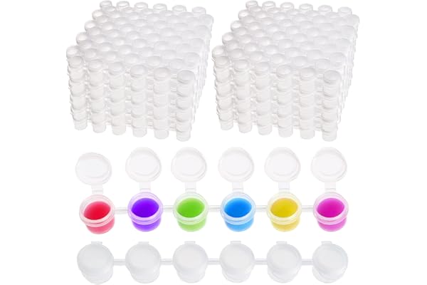 600 PCS Empty Paint Pots 3ml / 0.1oz Paint Pots with lids 100 Strips