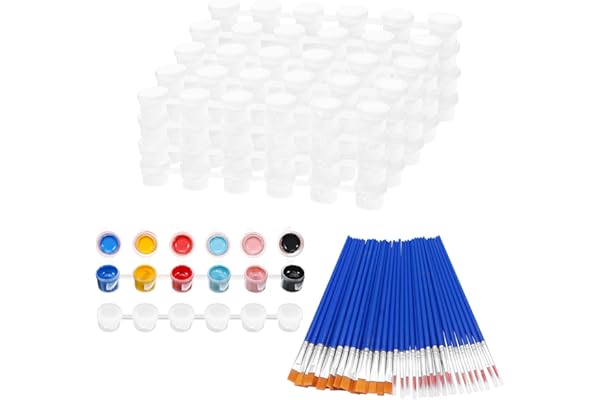 150 Pots 3ml/.1oz Mini Paint Pot Pod Strips Arts Crafts Plastic Storage Containers Painting Cup Pots for Classrooms School, Summer Camps, Festival