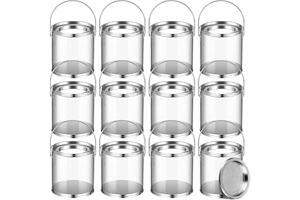12 Pack Paint Cans Plastic Paint Cans Clear Small Empty Paint Cans with Lids Mini Transparent Paint Bucket with Lid Art Can Containers for Crafts Candy DIY Projects Party Favor Decor