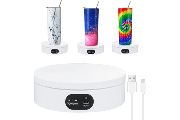 360° Automatic Mute Rotating Revolving Platform 12oz, 20oz&50oz Heat Press Blanks Tumblers Skinny Straight, Cup(White), White-01 (ZT-001)