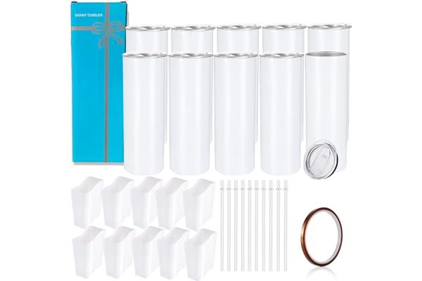 10 Pack Sublimation Tumblers Bulk Straight Skinny Tumbler Blanks 20oz for Heat Transfer