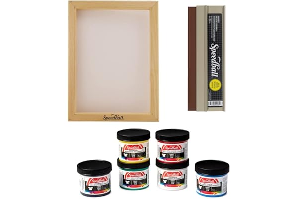 6 Fabric Screen Printing Inks, Screen Printing Frame, 10 x 14 Inch, & Craft Fabric Squeegee, 9 Inch