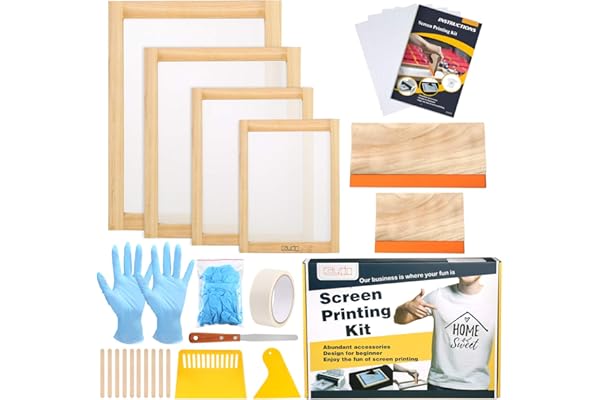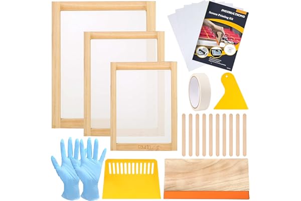 Include 3 Sizes Wood Silk Screen Printing Frame with 110 Mesh, Screen Printing Squeegees, Transparency Inkjet Film, Masking Tape