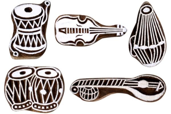 Fabric Stamp - Wood Print Textile Block for Craft, Card Making, Clay, Henna, Tattoo, Pottery & Hand Stamp Set of 5
