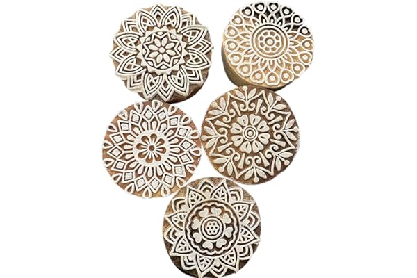 AnNafi® Traditional Mehendi Pattern Mandala and Round Wood Block Stamps (Set of 5)