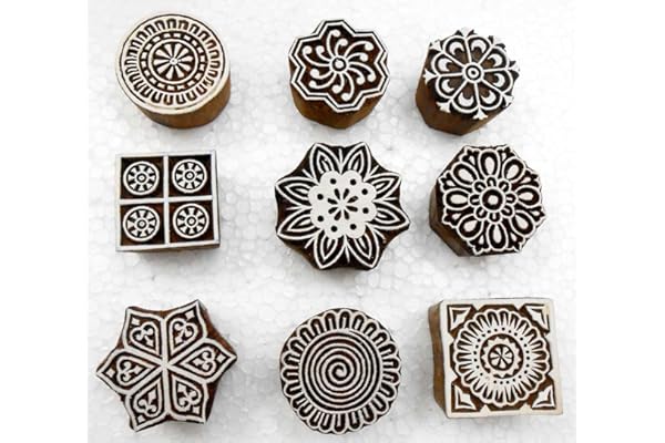 Handcarved Wooden Block Printing Stamps (Set of 9) for Textile Designing/Craft Printing Pattern for Saree/Scrapbookng/Tattoo