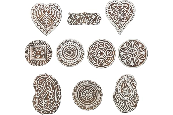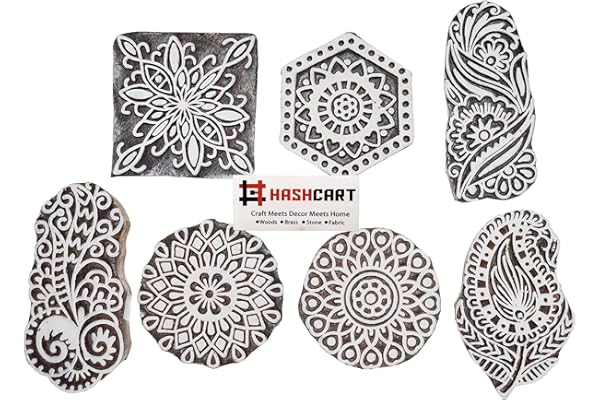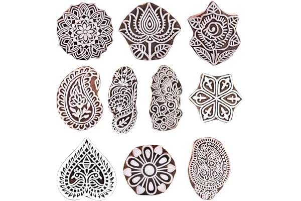 Hashcart Floral Pattern Wood Stamps - Paisley and Artistic Stamps for Printing Mehndi/Textile/Pottery Craft/Saree Border/Canvas Painting