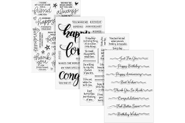 4 Sheets Words Clear Stamp Silicone Stamp Cards with Sentiments