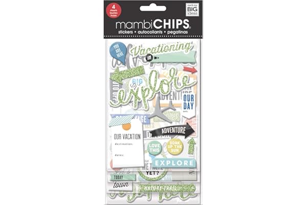 Scrapbooking Supplies - Vacation Theme - Metallic Glitter & Multi-Color - Great for Projects, Scrapbooks & Albums - 4 Sheets, 65 Stickers Total