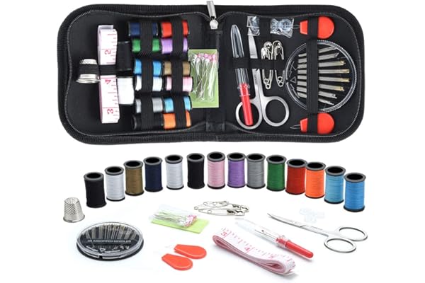 DIY Sewing Supplies with Sewing Accessories, Portable Mini Sewing Kit for Beginner, Traveller and Emergency Clothing Fixes, with Premium Black Carrying Case (Black)
