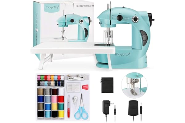 122 PC Dual Speed Portable Sewing Machine, Travel Small Sewing Machine Kit, Kids Sewing Machine Ages 8-12 with DIY Sewing Book & More
